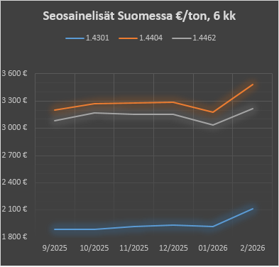 | 1.4404 | 3280 €/ton | 3285 €/ton | 3179 €/ton | 3482 €/ton |